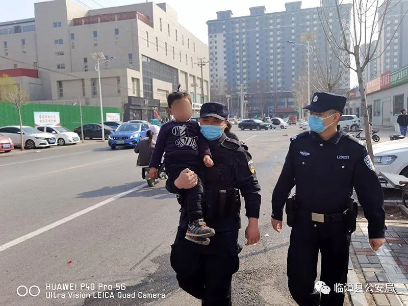 3月9日下午3时许,临漳县公安局特巡警大队接到群众报警:在天奕商场西门附近,有一个幼童迷路。接警后,特巡警四中队队员迅速前往现场处置。